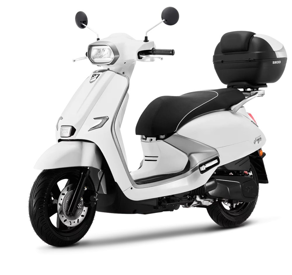 El nuevo scooter 125 de la gama Classic de SYM destaca por su diseño atemporal, pero con un enfoque totalmente moderno. Pensado para quienes valoran tanto la estética como el rendimiento, combina lo mejor de ambos mundos: un motor Euro 5+ que cumple con los más altos estándares de eficiencia y sostenibilidad, junto a un equipamiento que no se queda atrás en tecnología. Con su ABS de doble canal, Smart Key con inmovilizador de parking y pantalla LCD digital, este modelo ofrece una experiencia de conducción cómoda, segura y práctica, ideal para la vida urbana. Un scooter que te permite disfrutar de cada trayecto con la mejor tecnología, sin perder el toque clásico que la hace única.