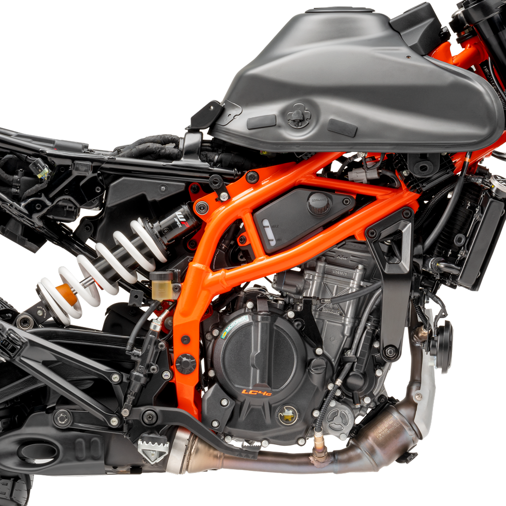 El nuevo diseño presenta una construcción de 2 piezas compuesta por un bastidor principal de acero enrejado y un bastidor auxiliar de aluminio fundido a presión. El diseño del bastidor no sólo está pensado para mejorar el aspecto general, sino también para mejorar la dinámica del vehículo aumentando la rigidez torsional, mejorando la agilidad y la respuesta del chasis tanto en asfalto como en pistas de tierra.