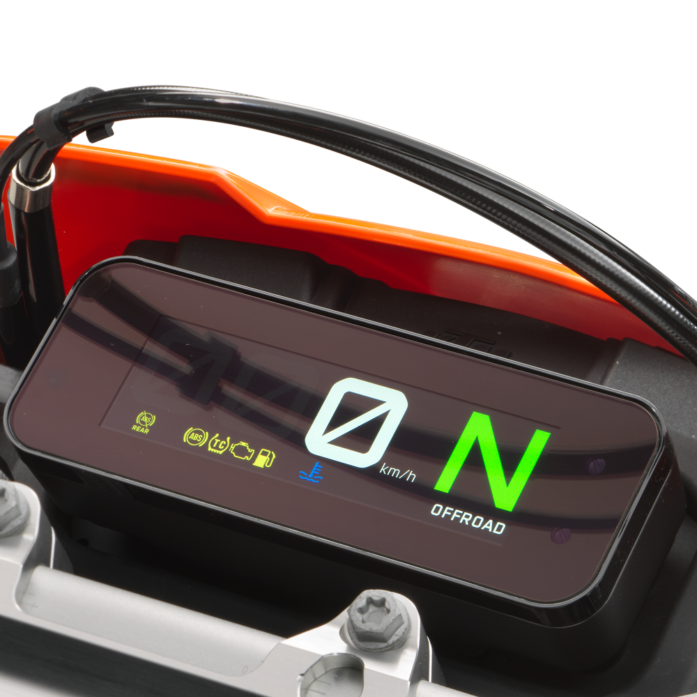 La KTM 125 ENDURO R dispone de un Modulador Bosch 10.3MB, que es el cerebro responsable de su impresionante sistema ABS. Esto permite ABS estándar y una opción OFFROAD ABS para aplicaciones de tierra. Sin embargo, si desea más control y mejor «skidablity». El botón específico de desactivación del ABS permite desactivarlo por completo.
