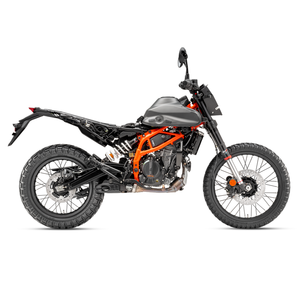 Con un triángulo ergonómico inspirado en sus fiables y queridas hermanas 690, la KTM 125 ENDURO R presume de una agresiva carrocería preparada para el off-road y un compacto depósito de combustible metálico de 9L perfectamente estilizado para facilitar la acción fuera del asfalto. La carrocería también está fabricada con materiales plásticos PP probados, flexibles y duraderos, más adecuados para el off-road y la conducción agresiva.